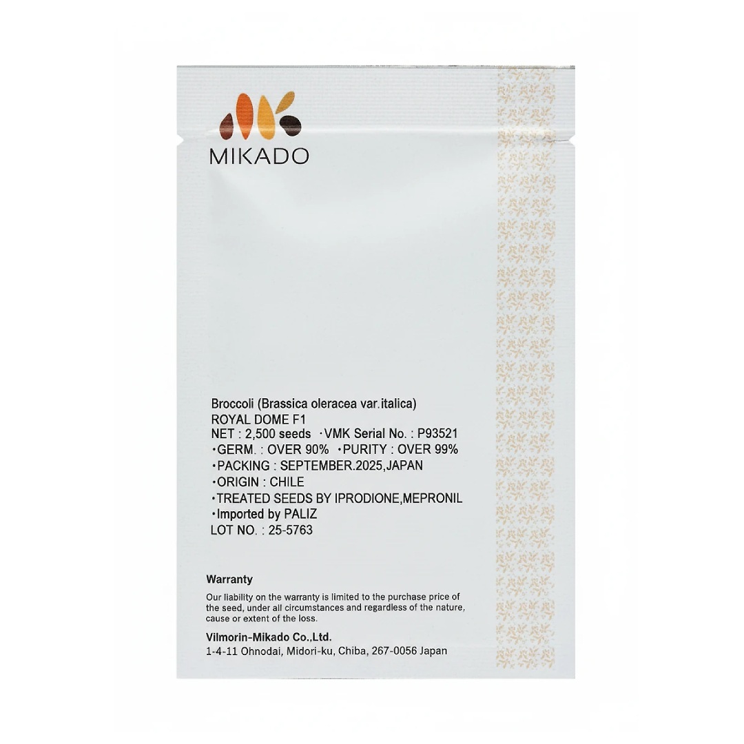 بذر بروکلی رویال دم (ROYAL DOME) محصول شرکت میکادو ژاپن، رقمی هیبرید با هد گنبدی شکل و یکنواخت و رنگ سبز تیره، گزینه ای مناسب جهت کشت میباشد.