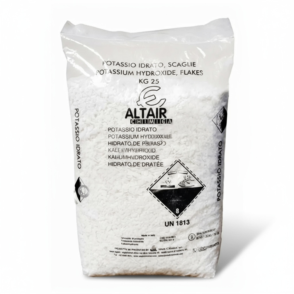 هیدروکسید پتاسیم (KOH)، که معمولاً به عنوان پتاس یا پتاسیم هیدروکسید نیز شناخته میشود، یک ترکیب معدنی بسیار قوی و خورنده است. این ماده جامد سفید رنگی است که به راحتی در آب حل میشود و محلول قلیایی قوی تولید میکند. هیدروکسید پتاسیم Altair یکی از برندهای معتبر تولیدکننده این ماده شیمیایی است که به دلیل کیفیت بالا و خلوص آن، در صنایع مختلف کاربرد گستردهای دارد.