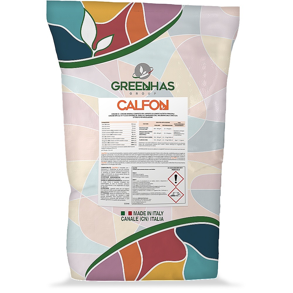 کالفون یک کود NPK اسیدی و محلول در آب حاوی کلسیم است که از طریق واکنش اسیدی فرموله شده است که از سایر کودهای NPK محلول در آب متمایز میشود زیرا علاوه بر عناصر ماکرو و ریزمغذی، مقدار مناسبی کلسیم به همراه دارد.