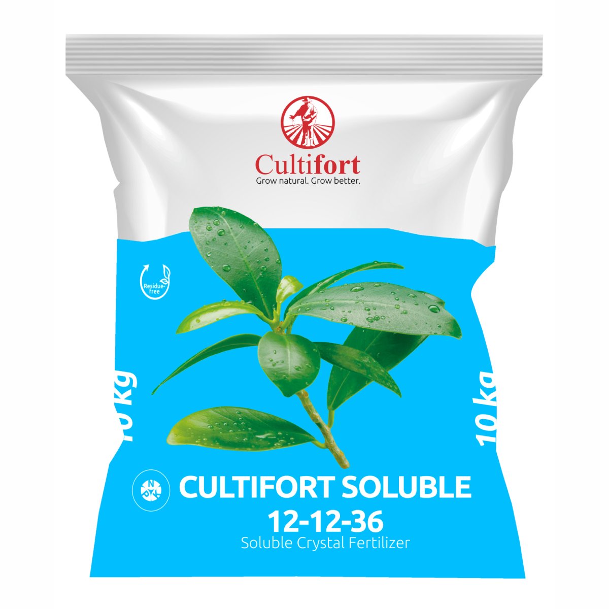 کود کالتیفورت NPK 12-12-36+TE شامل ۱۲% ازت، ۱۲% فسفر و ۳۶% پتاسیم به همراه مواد معدنی ریزمغذی (میکرو المنت) بور، آهن، منگنز، مس و روی به فرم کلات EDTA کاملا پایدار، که سبب ماندگاری بیشتر عناصر در خاک و جذب کامل آنها توسط ریشه شده و به دلیل قدرت جذب بالا در صورت محلول پاشی به سرعت توسط برگ جذب می شود و یک کود کامل به حساب می آید.