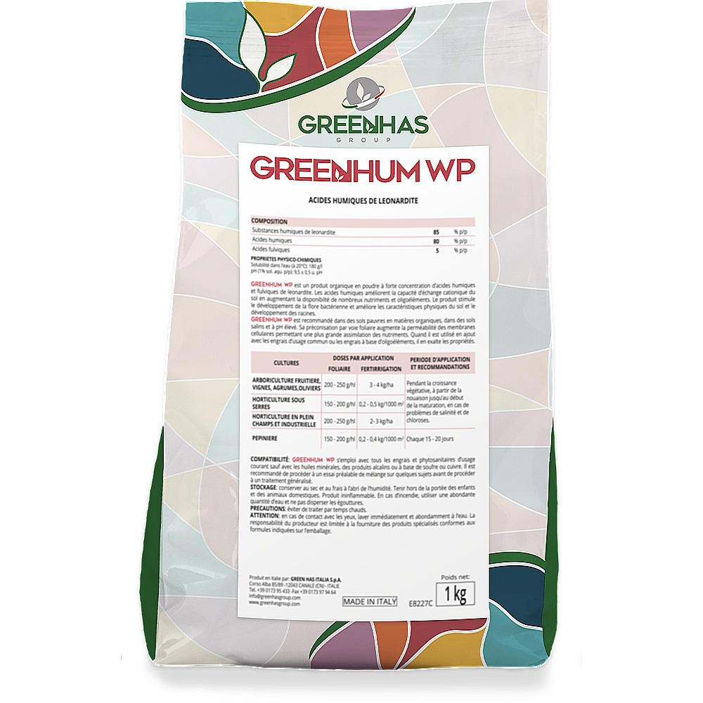 کود گرین هیوم گرین های ایتالیا، هیومیک اسید عصاره لئوناردیت بوده که استفاده از آن در خاکهای فقیر از مواد آلی باعث بهبود ساختار و افزایش ظرفیت نگهداری آب و کاهش اثرات منفی شوری میشود.