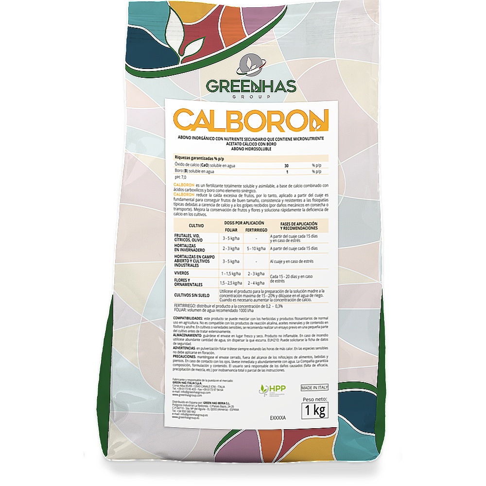 کود کلسیم بُر شرکت گرین هاس ایتالیا با نام کلبرون به صورت پودری و در پاکت های ۱ کیلوگرمی بسته بندی می شود.
